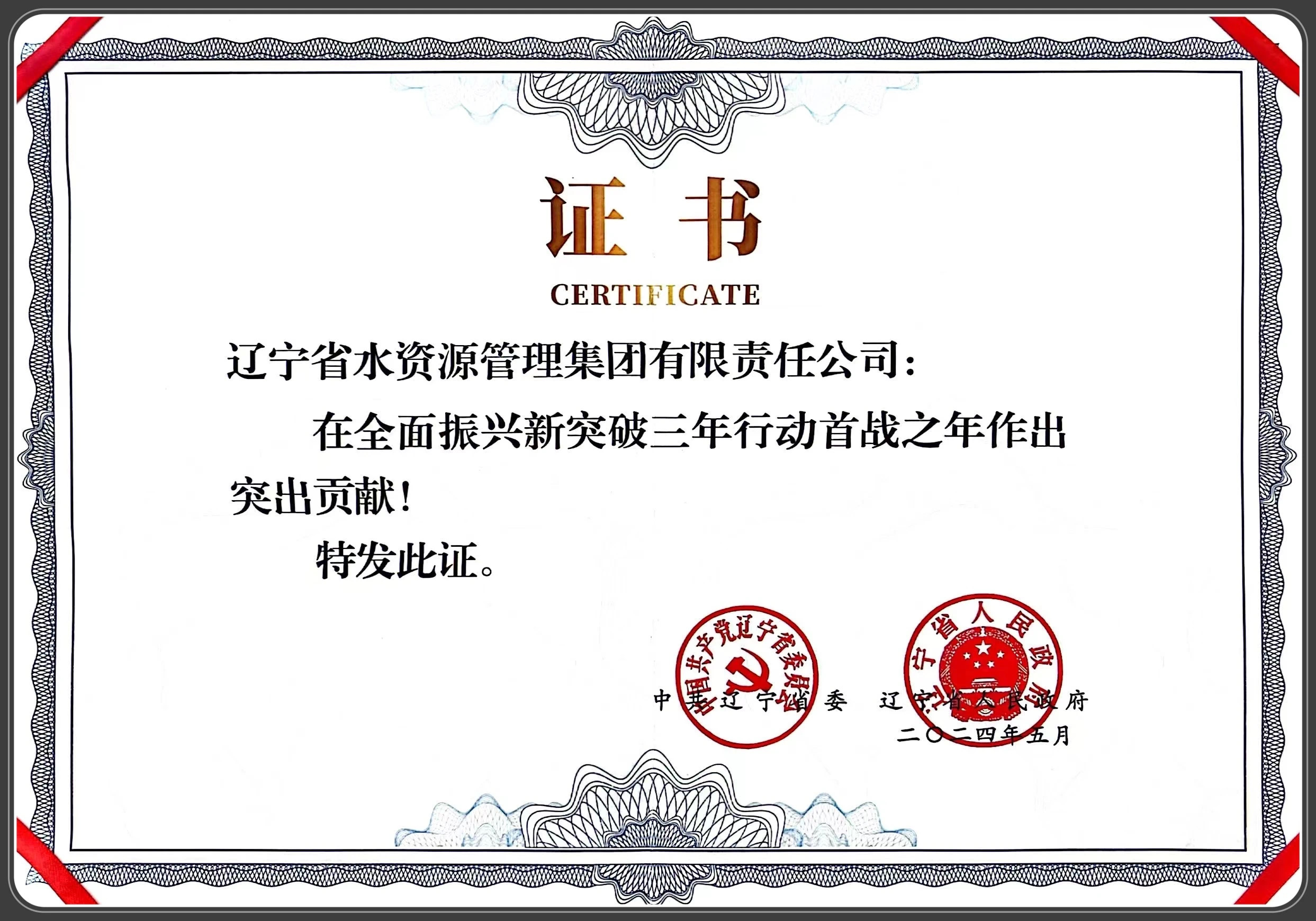 集团荣获辽宁全面振兴新突破三年行动首战之年突出贡献企业