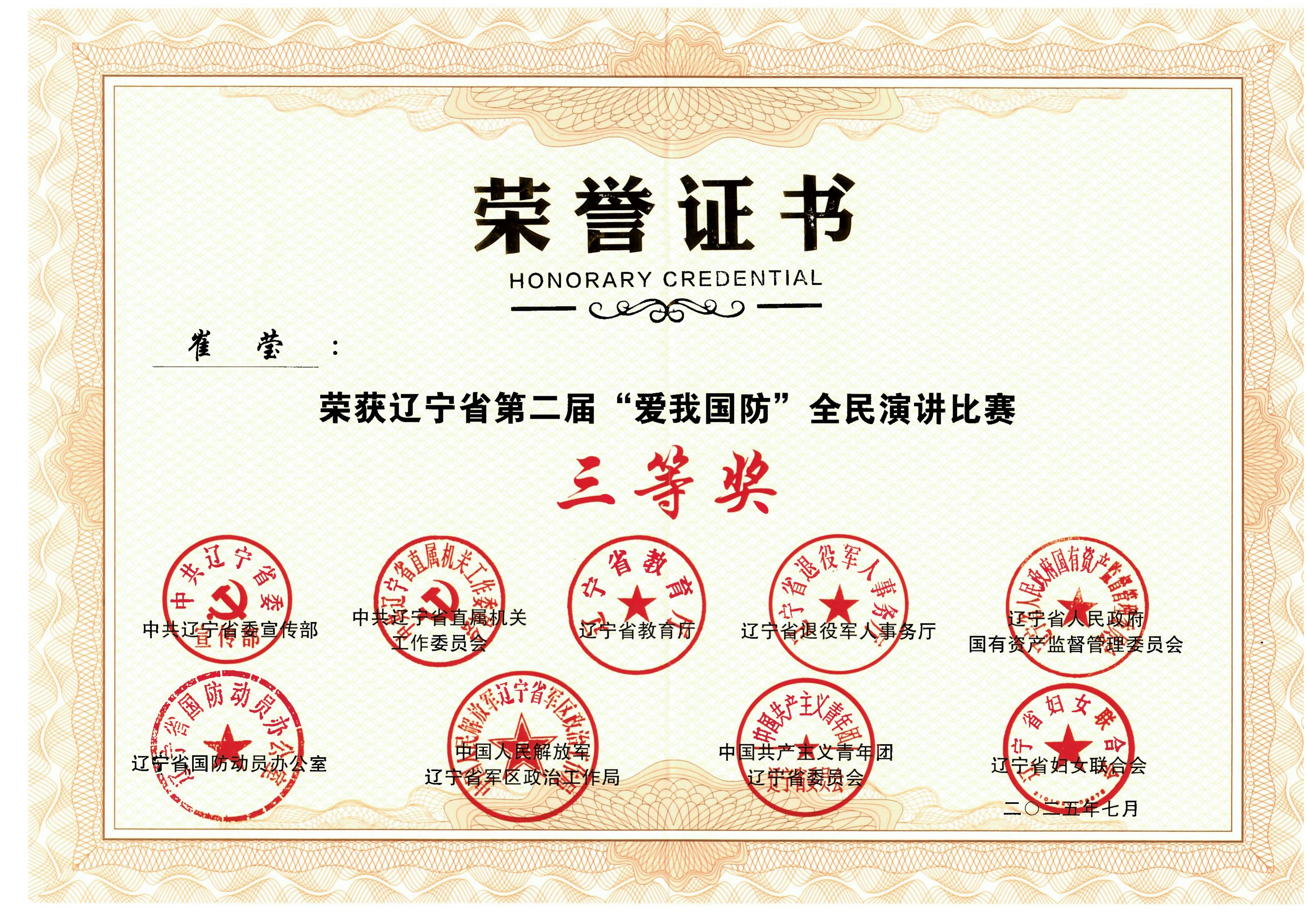 6月9日,辽宁省第二届“爱我国防”全民演讲比赛总决赛在沈阳理工大学举行。辽西北公司职工崔莹凭借作品《当国歌响起》荣获大赛三等奖。