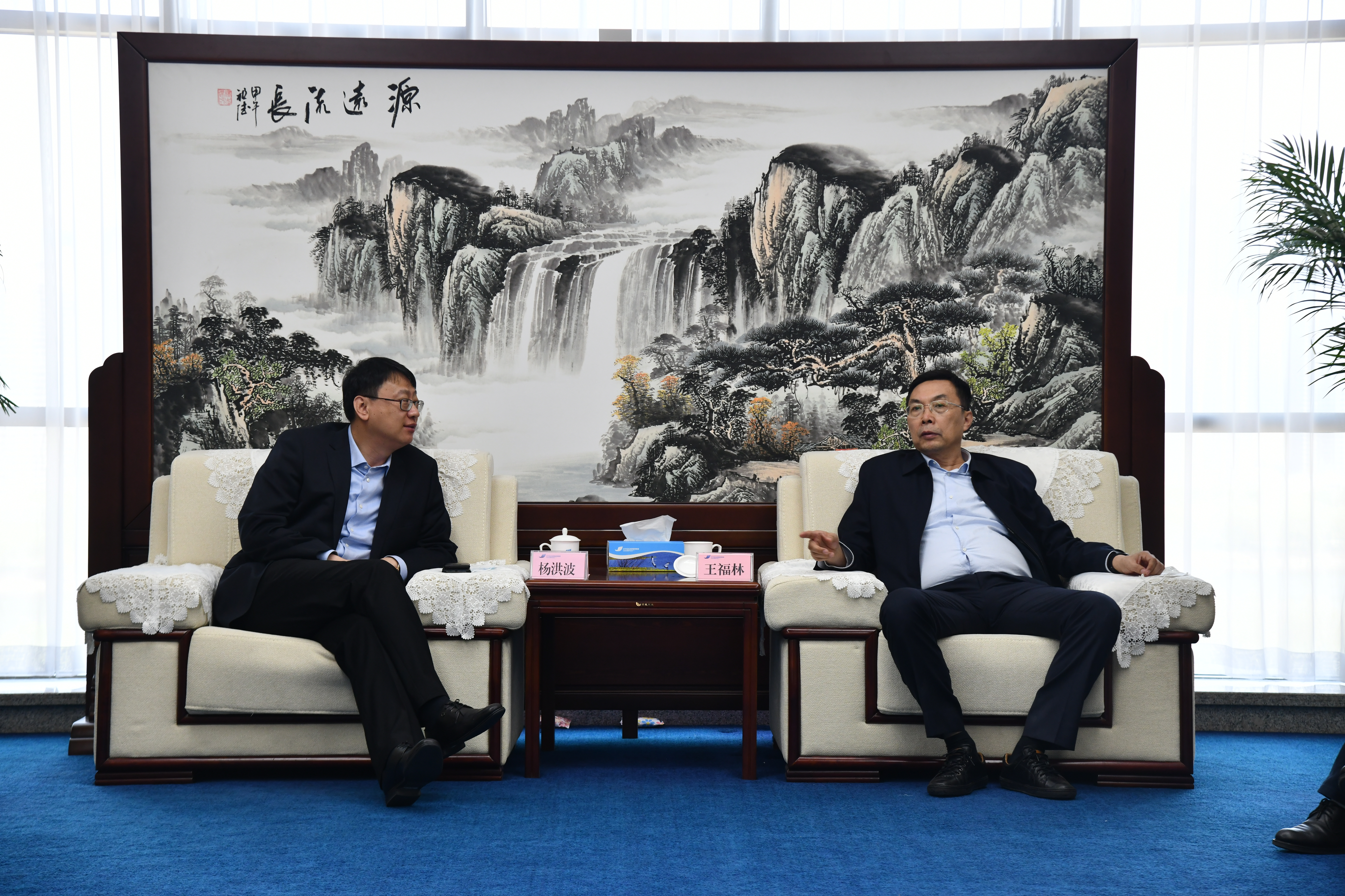 4月27日,集团党委书记、董事长王福林会见海城市委副书记、市长杨洪波一行,会商海城市经济社会发展用水安全事宜。